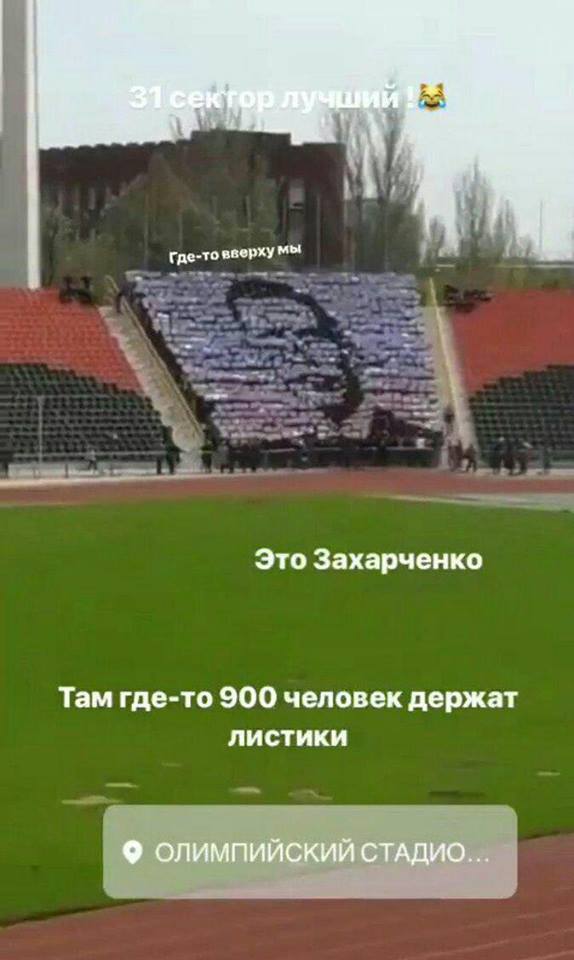 А потом, когда все закончится 11 мая, и мы не увидим портрет Захарченко, я, если будет желание, выложу оперативную съемку репетиций, где изображенный на фото сектор превращается в лицо, такое знакомое нам по бигбордам.